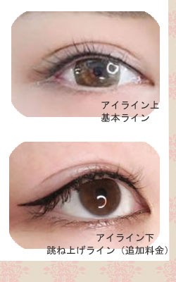 | アイライン上 (まつげライン※はねあげ、切れ長ラインは別途料金) |