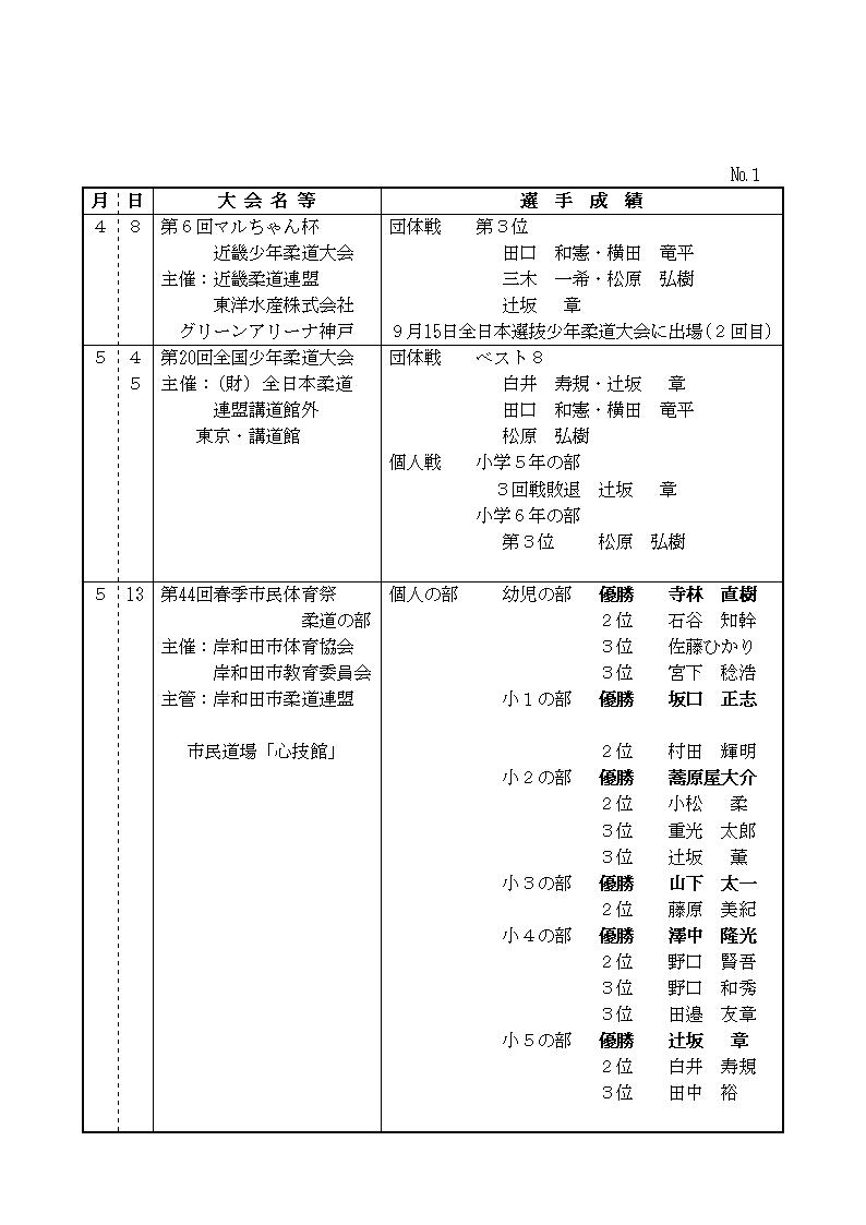 平成12年度 全成績