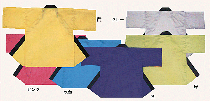 使用生地:アセテート100% サイズ:大人フリー(身丈80cm 身巾65cm) 色:黄、ピンク、水色、紫、緑、グレー ●手拭、帯はセットされておりません 注文枚数に応じて卸売できます。 価格(税別)¥4,400