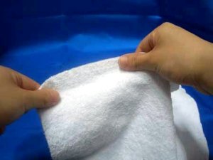 ◎ハチマキタオルは普通のタオル生地です。 ◎のびーるハチマキタオルはこのように横にのびるタオル生地です。