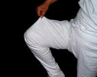 どんなに動いてもぴったりフィット山松特製生地を使用しています。 |